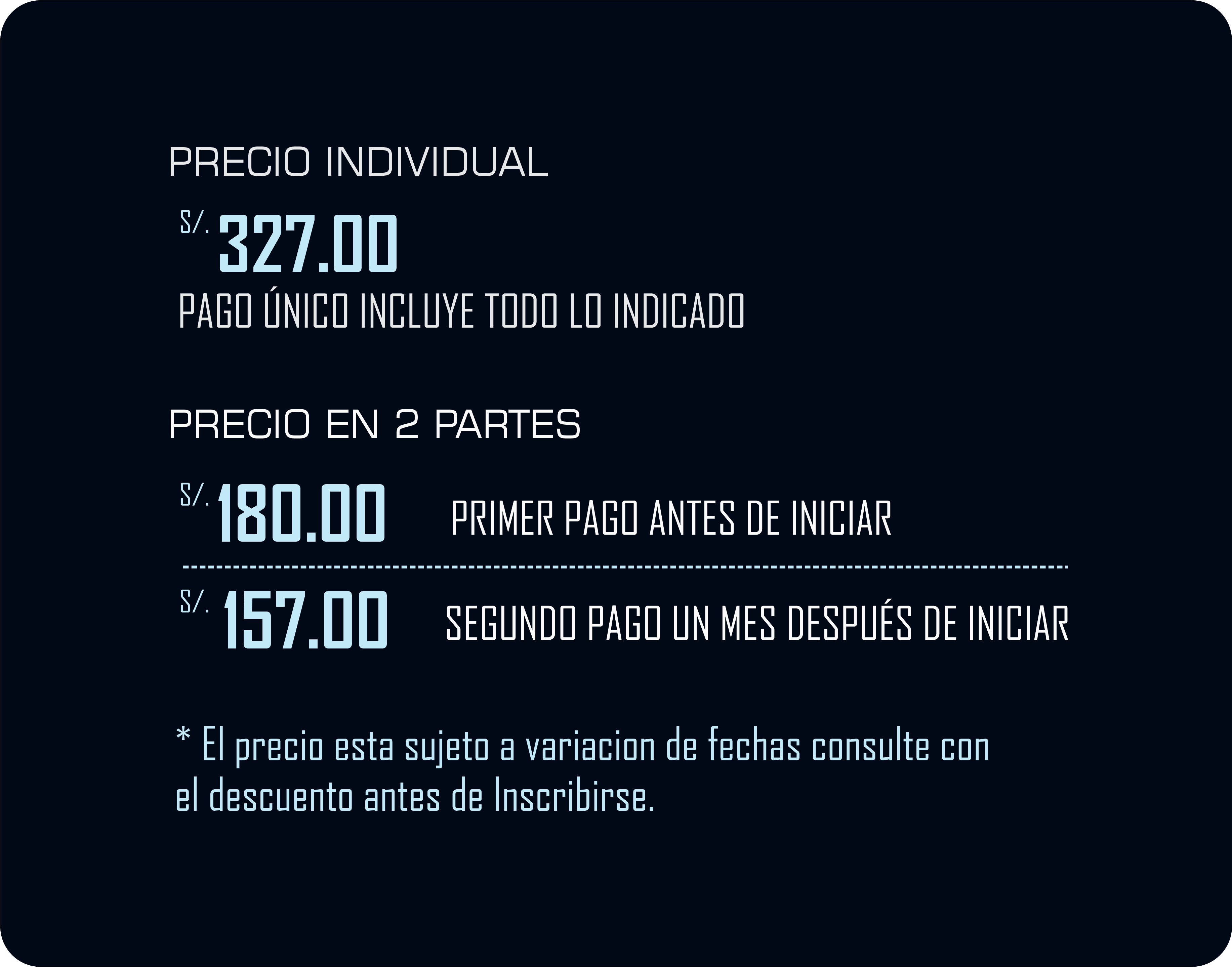 Los precios varian conforme a la siguiente tabla a continuación.