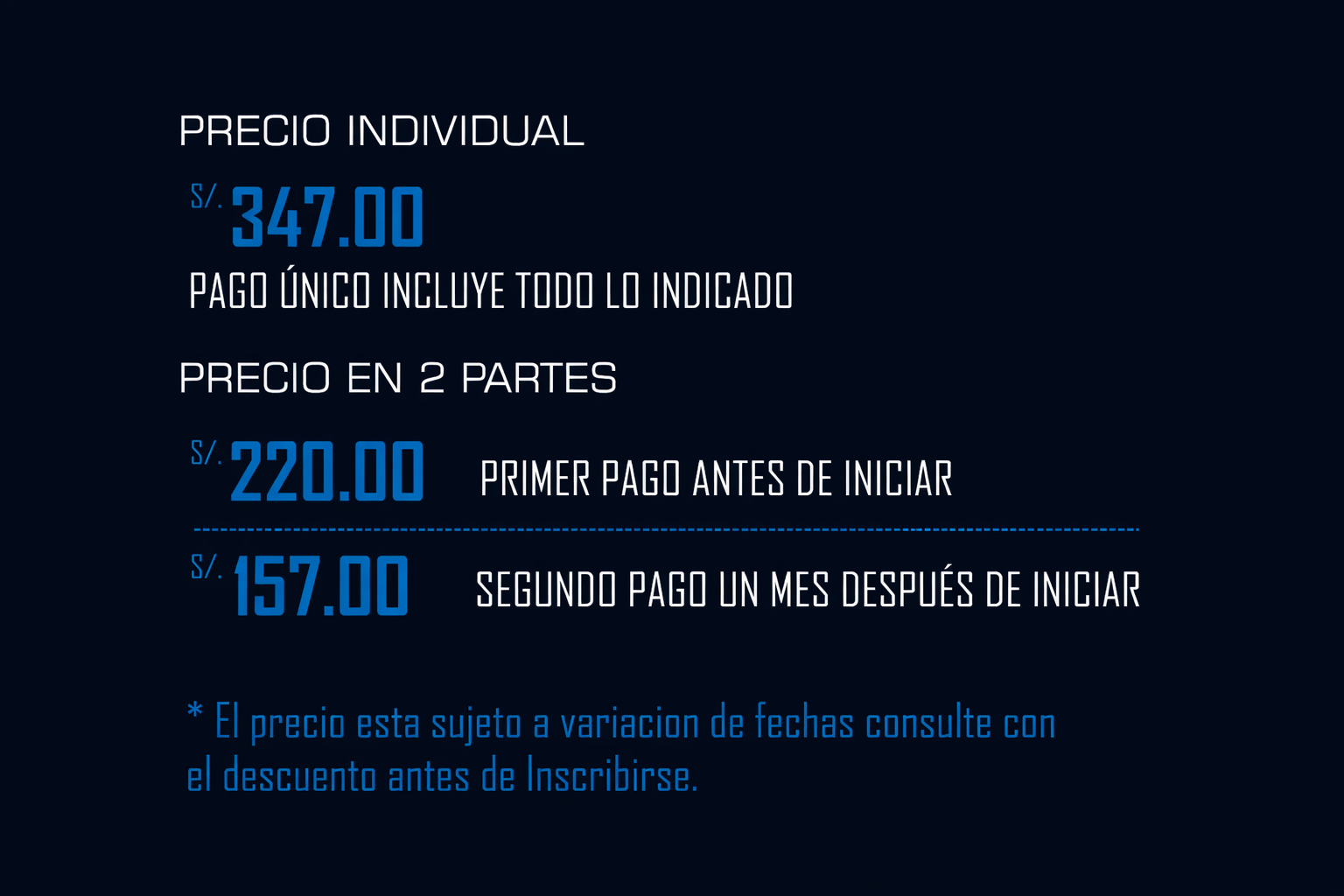 Los precios varian conforme a la siguiente tabla a continuación.