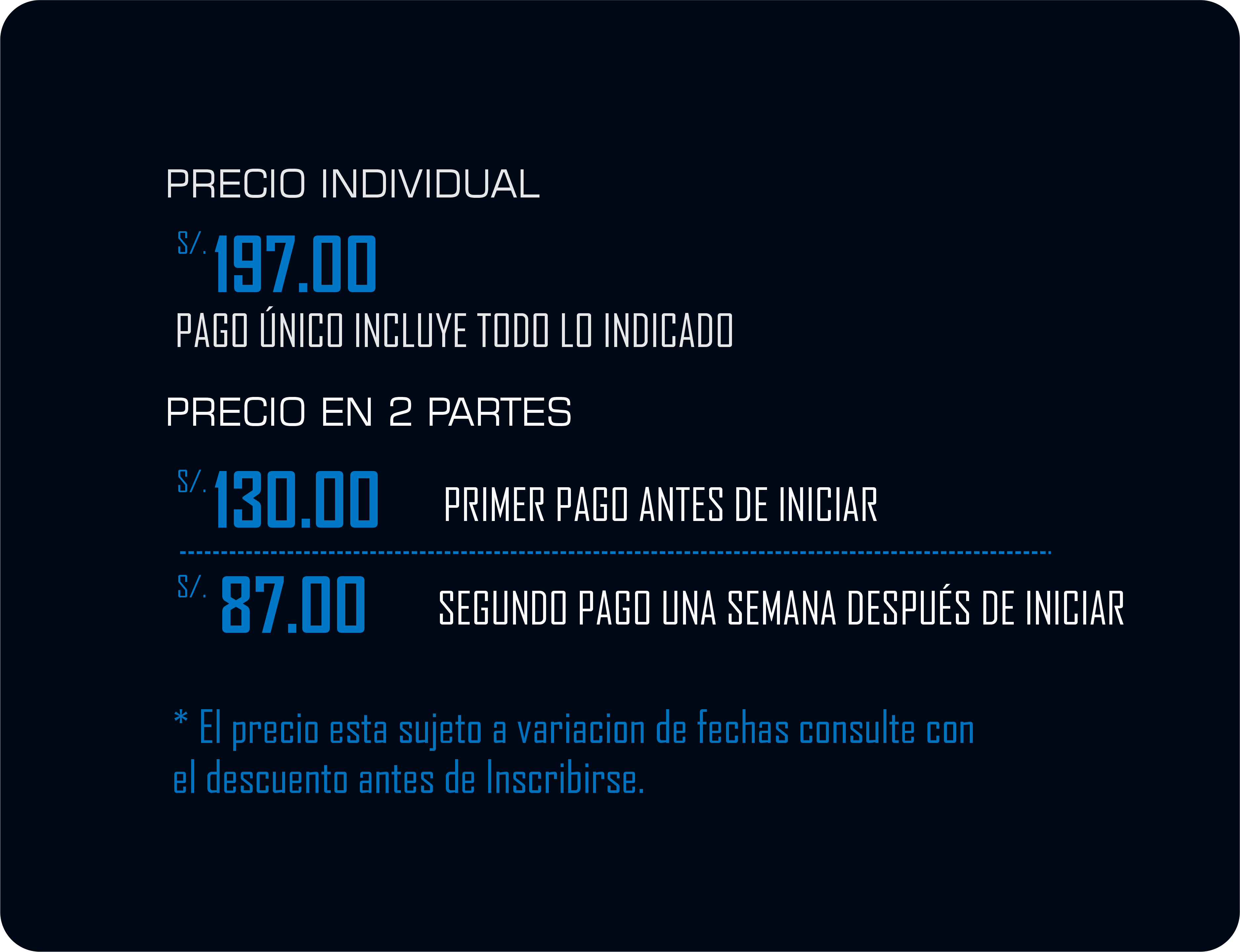Los precios varian conforme a la siguiente tabla a continuación.